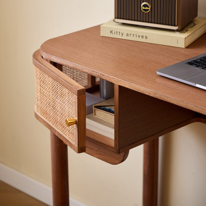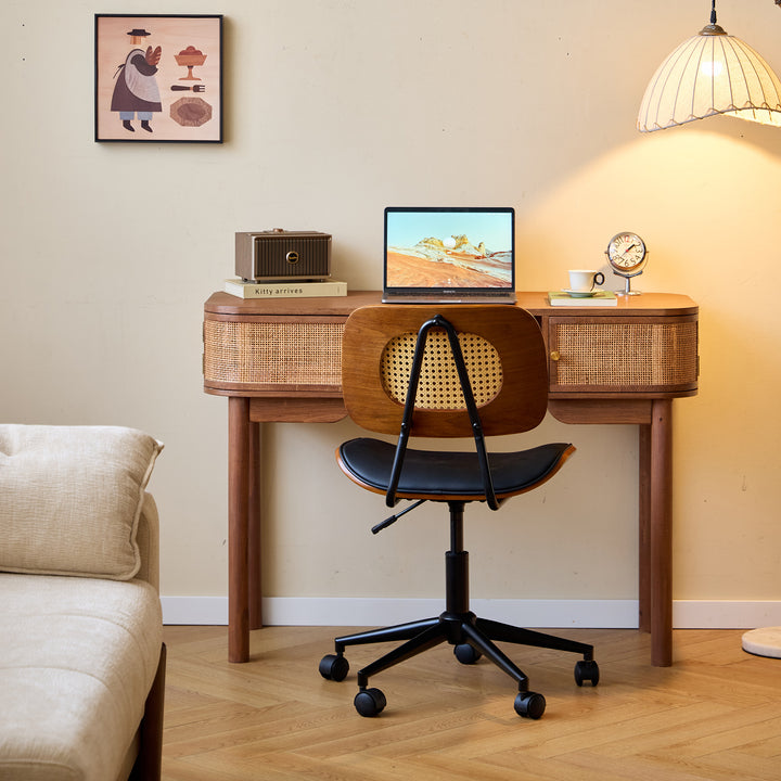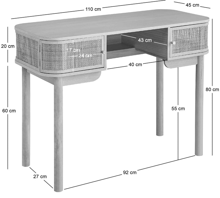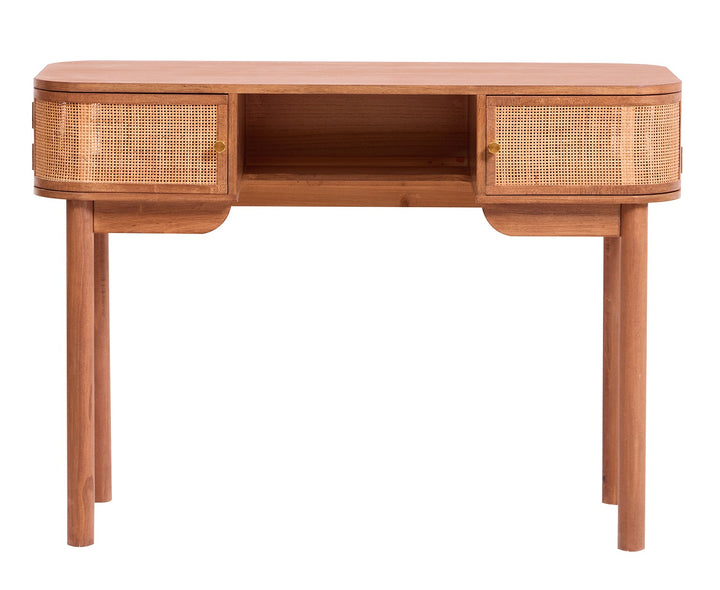 Con su diseño elegante y su estructura de madera, el escritorio TOYAMA tiene todo lo necesario para alegrar su hogar. Comedor, dormitorio, estudio o salón, seguro que encuentra un lugar en su hogar. Sus 2 puertas correderas ofrecen opciones de almacenamiento prácticas y con estilo. Los tiradores de madera tienen un acabado lacado. Su estructura de madera garantiza estabilidad y resistencia a los golpes. Fácil de limpiar, basta con pasarle un paño húmedo.