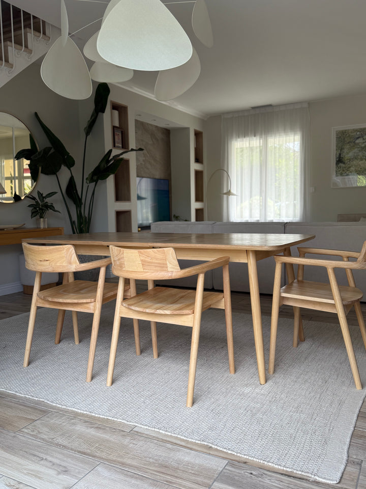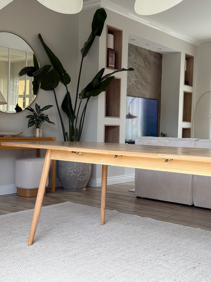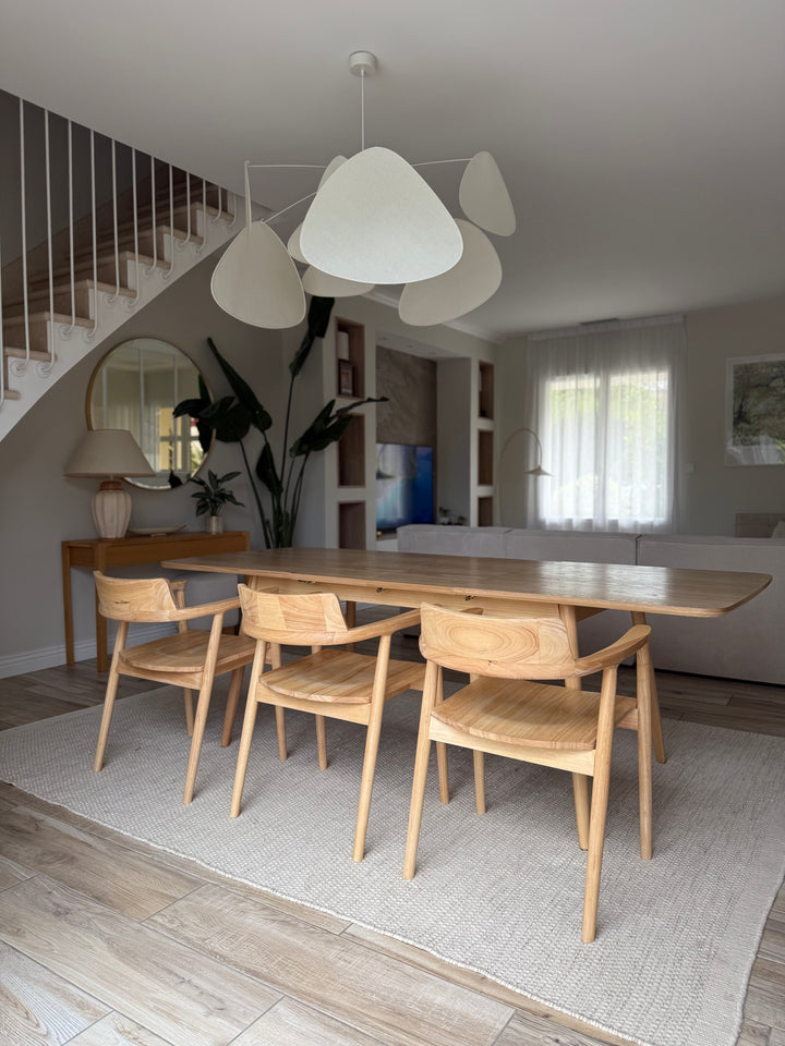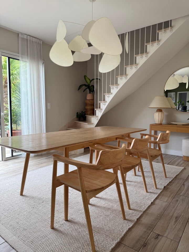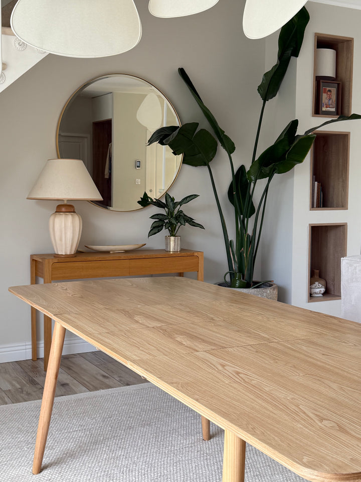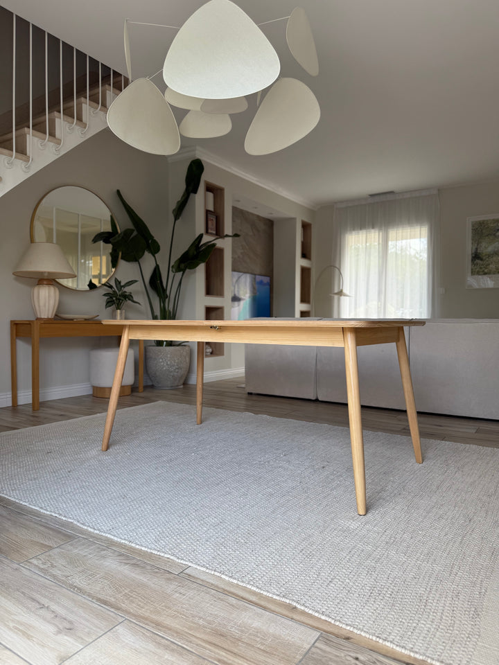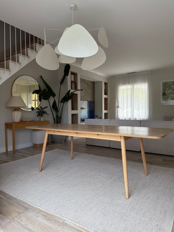 La mesa de comedor CORTE es la combinación perfecta de comodidad, durabilidad y diseño atemporal. De elegante estilo escandinavo, puede acoger de 6 a 8 comensales gracias a sus hojas extensibles. Fabricada en pino con certificado FSC, esta mesa garantiza solidez y una calidad impecable. Su color marrón aporta un toque cálido a su comedor, y su facilidad de mantenimiento la convierte en un mueble práctico para el día a día. La mesa Nordlys es la elección ideal para las comidas en familia o entre amigos, al tiempo que aporta un toque de modernidad a su interior.