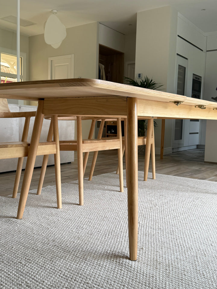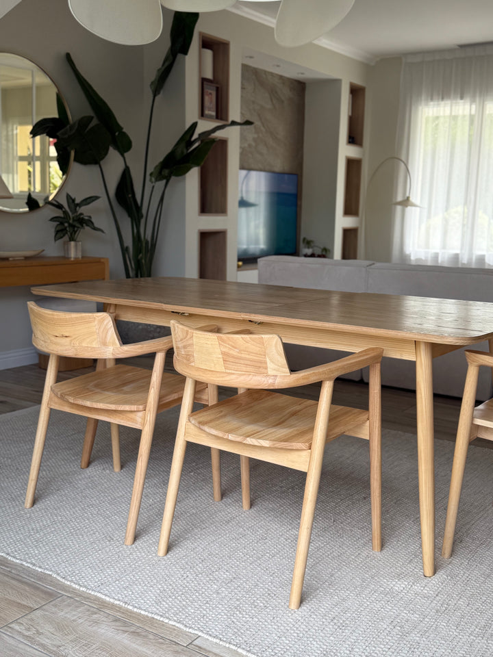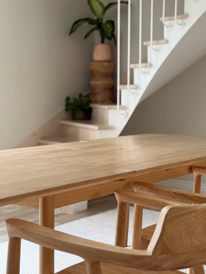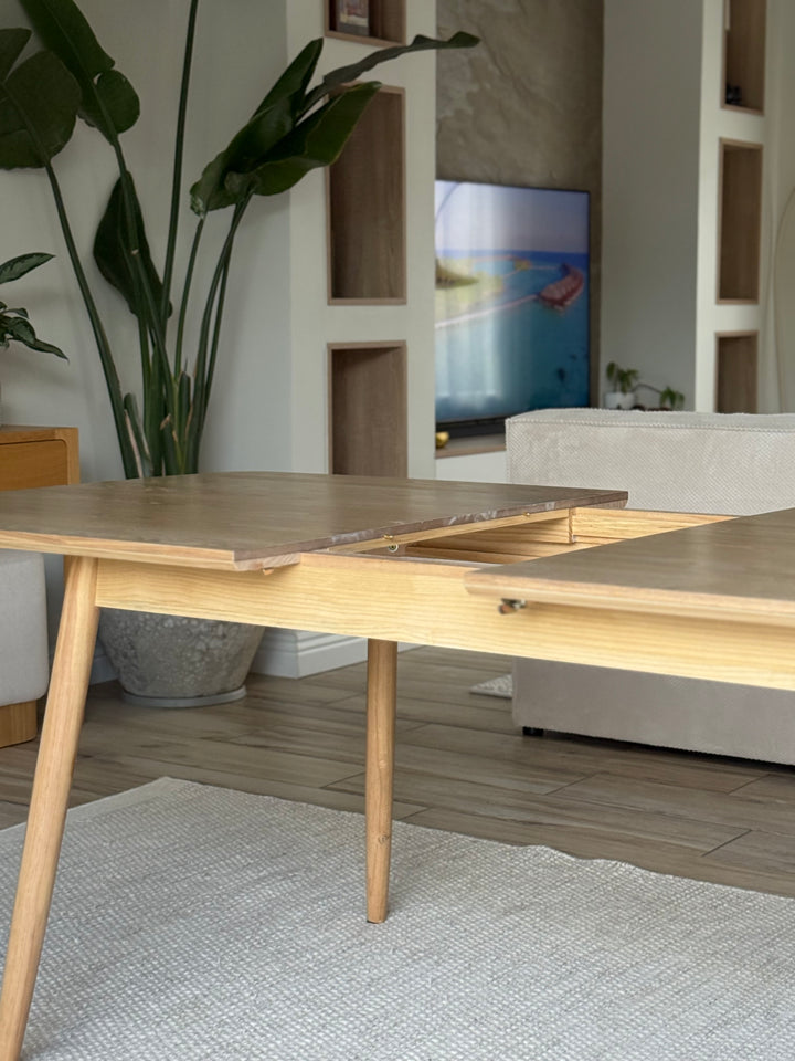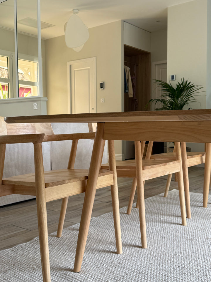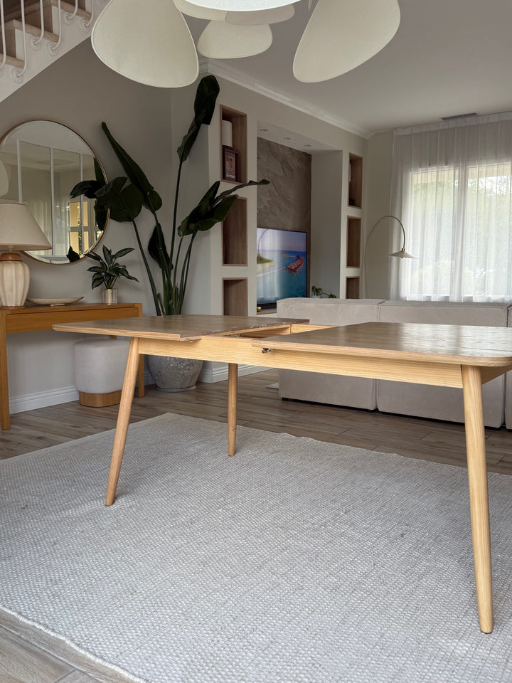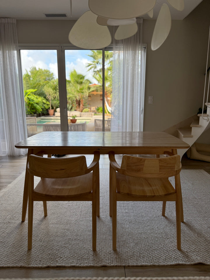 La mesa de comedor CORTE es la combinación perfecta de comodidad, durabilidad y diseño atemporal. De elegante estilo escandinavo, puede acoger de 6 a 8 comensales gracias a sus hojas extensibles. Fabricada en pino con certificado FSC, esta mesa garantiza solidez y una calidad impecable. Su color marrón aporta un toque cálido a su comedor, y su facilidad de mantenimiento la convierte en un mueble práctico para el día a día. La mesa Nordlys es la elección ideal para las comidas en familia o entre amigos, al tiempo que aporta un toque de modernidad a su interior.
