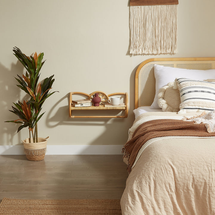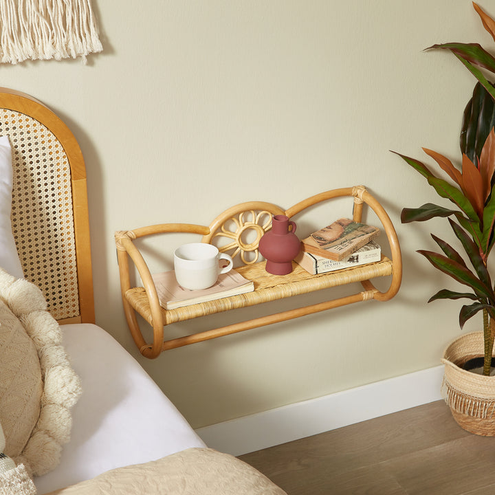 Descubra nuestra estantería colgante de ratán natural, que aportará un toque de estilo escandinavo a su hogar. Con su tapa de diseño, esta estantería es a la vez práctica y atractiva. Su color natural y su material de ratán la hacen duradera y fácil de cuidar. Certificada por su calidad, tiene un acabado lacado para un diseño atemporal que combinará perfectamente con todo tipo de decoración. Elija esta estantería colgada de la pared para disponer de un espacio de almacenamiento adicional, al tiempo que añade un toque de calidez y autenticidad a su habitación.