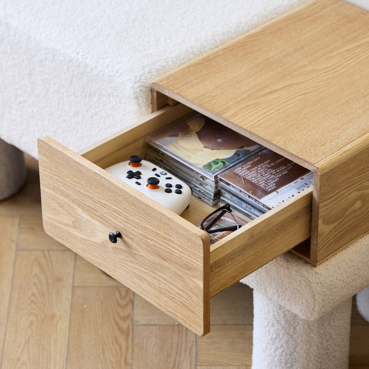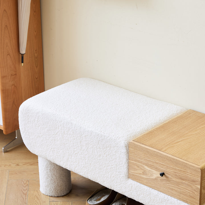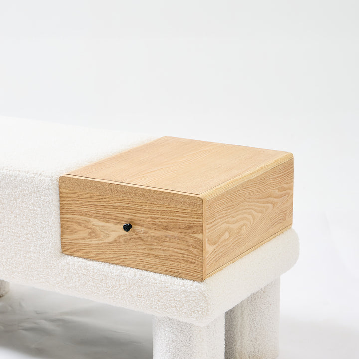 Descubra el banco VADSO para aportar un toque de estilo escandinavo a su hogar. Su color blanco y su tapizado de rizo lo convierten en un mueble elegante y atemporal. Fabricado con tejido certificado OEKO-TEX, garantiza la máxima calidad y es fácil de mantener. Este banco de diseño combina practicidad y estética con su cajón de madera para guardar diversos objetos. Opte por Nordlys para obtener muebles de calidad que se adaptan a cualquier estilo de decoración, al tiempo que ofrecen un espacio de almacenamiento adicional. Este producto contiene madera, un material natural cuyo color puede variar ligeramente en función de la luz.