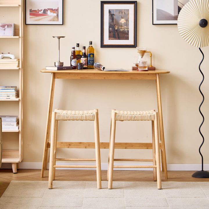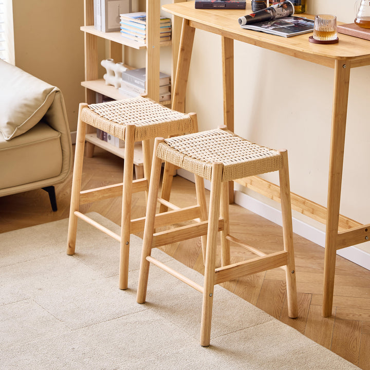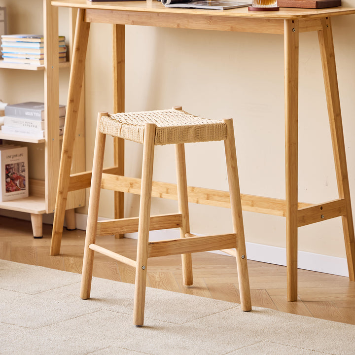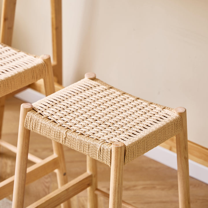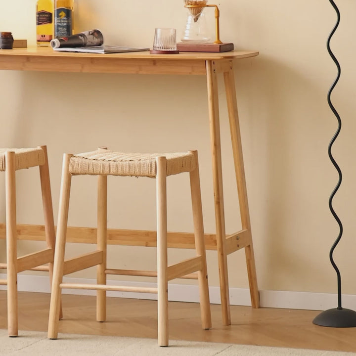 Los taburetes SALTA de madera maciza y cuerda son perfectos para añadir un toque escandinavo a tu interior. Estos taburetes combinan comodidad y durabilidad gracias a su estructura de madera maciza de caucho con certificación FSC. Su diseño atemporal los convierte en un elemento decorativo por derecho propio, además de ser prácticos y funcionales. De fácil mantenimiento, estos taburetes encajarán perfectamente en su cocina o bar, aportando calidez y convivencia a sus espacios de vida. Con su color marrón y su acabado en madera de calidad, estos taburetes de bar encajarán en cualquier estilo de decoración. Regálese estos taburetes de bar escandinavos y relájese con estilo.