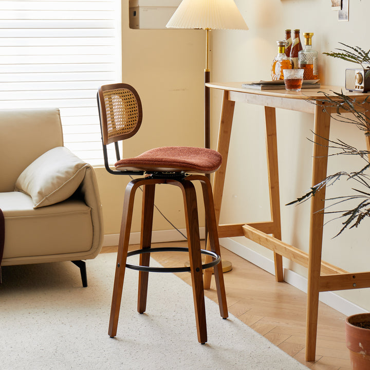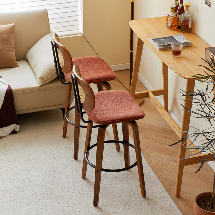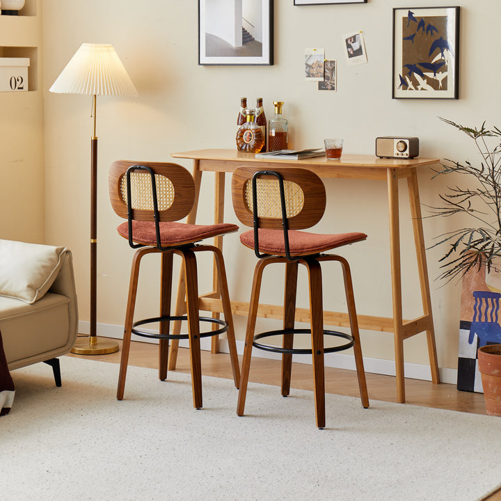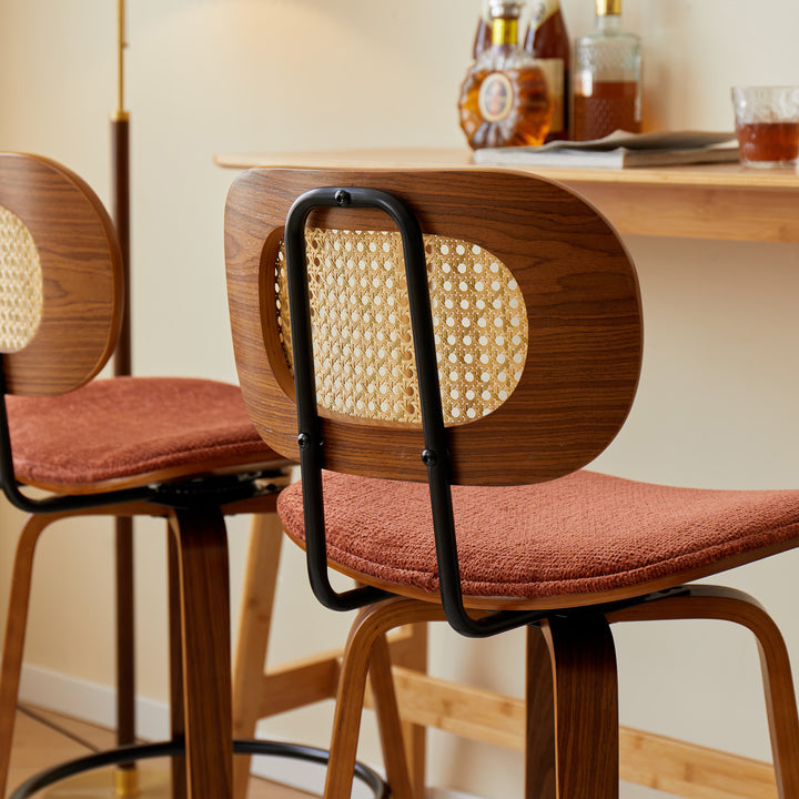 El juego de 2 taburetes de bar ALESUND de madera y caña combina a la perfección comodidad, durabilidad y diseño atemporal en un refinado estilo escandinavo. Estos taburetes de terracota en fresno y tela añadirán un toque elegante a tu espacio. La madera con certificación FSC garantiza una fabricación sostenible y respetuosa con el medio ambiente, mientras que el caña y la tela añaden un toque de diseño a los taburetes. Perfectos para complementar tu cocina o bar, estos taburetes aportarán modernidad y calidez a tu interior. Disfrute de estos taburetes de bar de alta calidad para momentos agradables con amigos o familiares, mientras agrega un toque de sofisticación a su decoración. Este producto contiene madera, un material natural cuyo color puede variar ligeramente dependiendo de la luz.