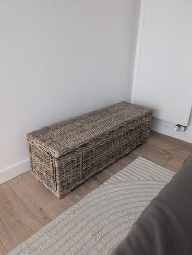 CUZCO - Banco con espacio de almacenamiento en madera y fibras naturales