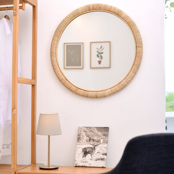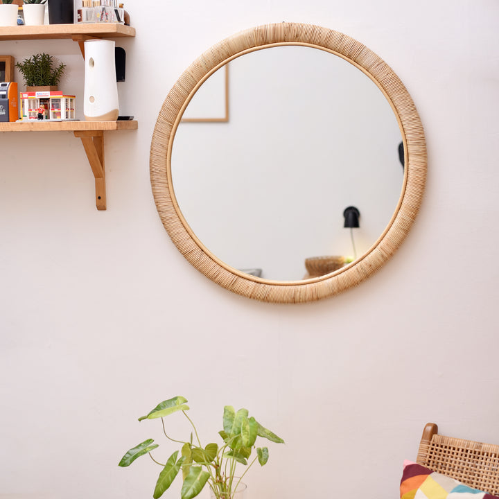 DARWIN - Espejo redondo Ø 75 cm de ratán natural